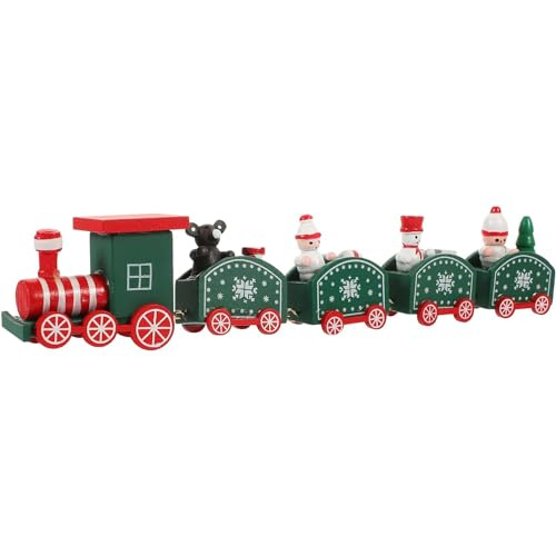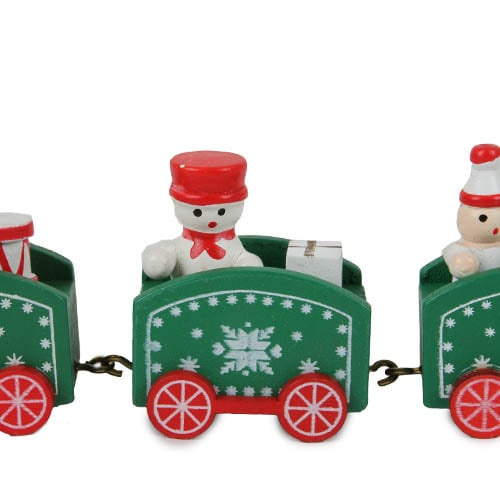 Dit houten treinsetje bestaat uit 4 onderdelen : 1 x locomotief met daarachter 3 x wagonnetjes . In de wagonnetjes zitten kerstfiguurtjes .