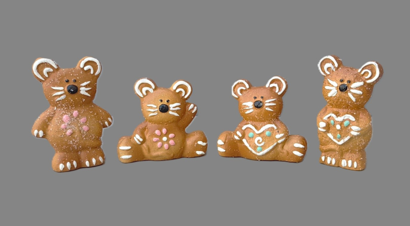 Setje van 4 stuks - Peperkoekfiguur Muis staand/zittend - H=6-7,5cm KD0610