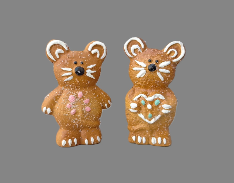 Artikelnummer: 4058647061508Setje van 4 stuks Peperkoekfiguur Muis staand en zittend in 2 kleuren